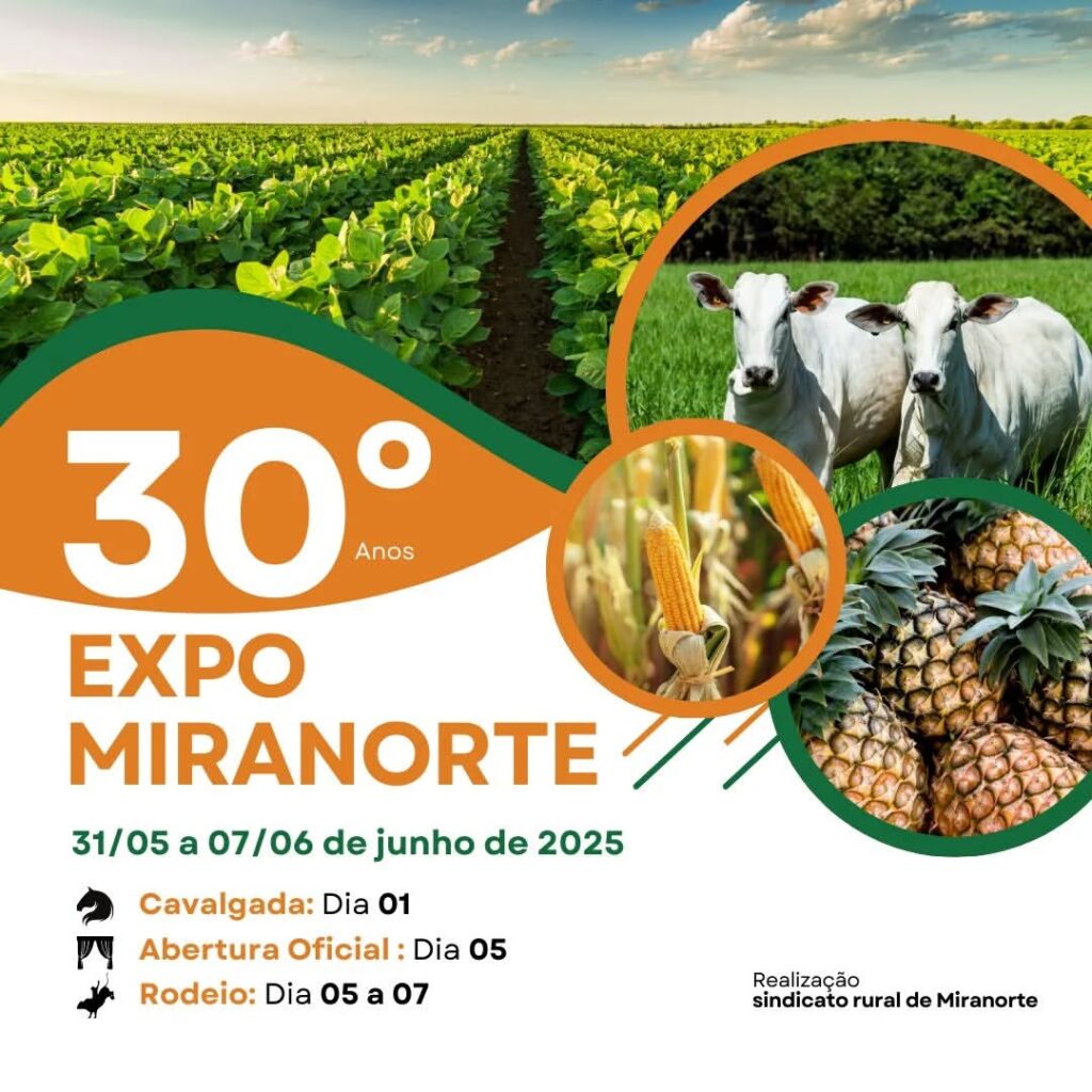 A cidade de Miranorte, no Tocantins, se prepara para receber a 30ª edição da ExpoMiranorte, uma das tradicionais feiras agropecuárias do estado. O evento será realizado de 31 de maio a 7 de junho de 2025, no parque de exposições da cidade, e a entrada será gratuita durante toda a programação.