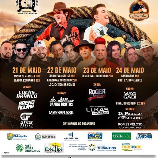 Durante quatro dias de evento, a programação inclui cavalgada, shows regionais e três noites de rodeio – atração que celebra a cultura sertaneja e atrai grande público. A final do rodeio está marcada para sábado (24), às 22h30, seguida pelos shows de Di Paullo & Paulino e Romes Veloso, encerrando a feira.