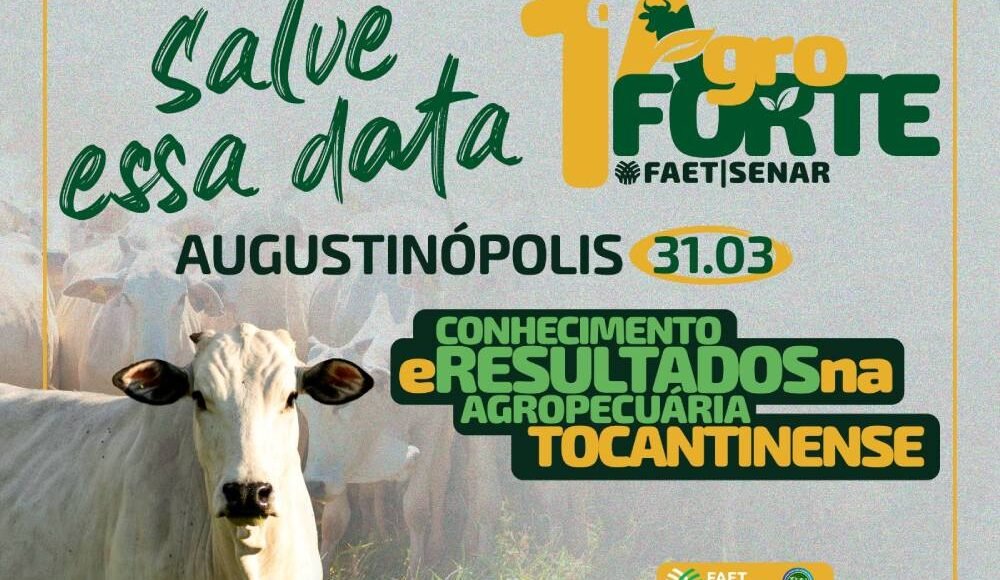 “Discutir os temas do momento no meio rural, apresentar saídas para os desafios técnicos que surgem nas fazendas, mostrar novas tecnologias que gerem aumento de produção e renda e auxiliar o produtor com as questões burocráticas que afetam o campo. Esses são os objetivos do nosso 1º Agro Forte – FAET/Senar”. As palavras são do presidente da FAET, Paulo Carneiro, sobre uma nova iniciativa do sistema que terá como marco inicial o município de Augustinópolis, na região do Bico do Papagaio, no extremo norte do estado.