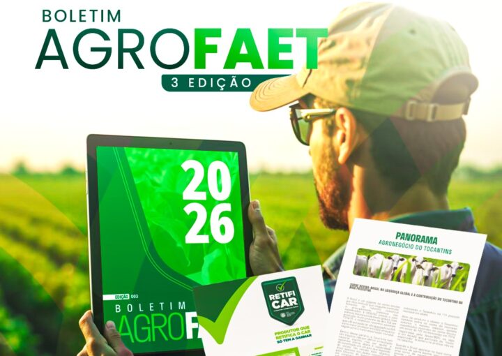Renata Santana24/02/2026FAET lança 3ª edição do Boletim AgroFAET com análise do mercado de trabalho e desempenho do agronegócio tocantinense