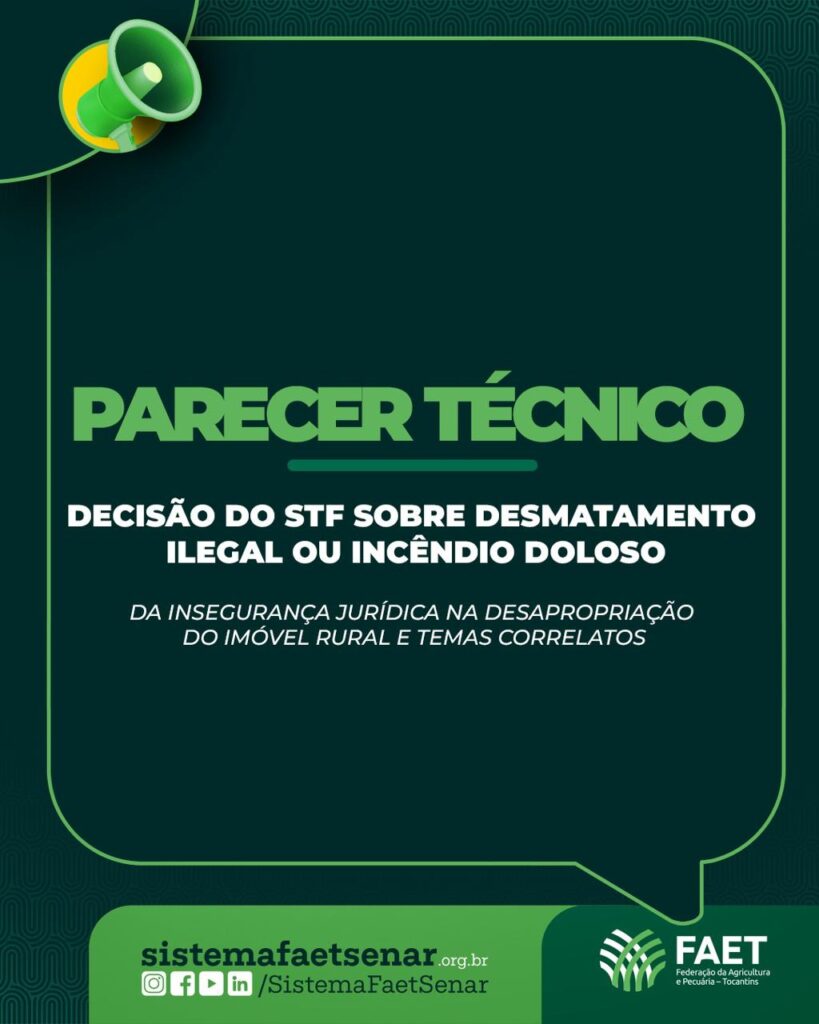 Com o objetivo de orientar os produtores rurais e reforçar a importância das medidas preventivas, a FAET elaborou um parecer técnico detalhado sobre uma decisão recente do Supremo Tribunal Federal (STF). O documento explica como a medida pode afetar o dia a dia de quem vive e produz no campo.