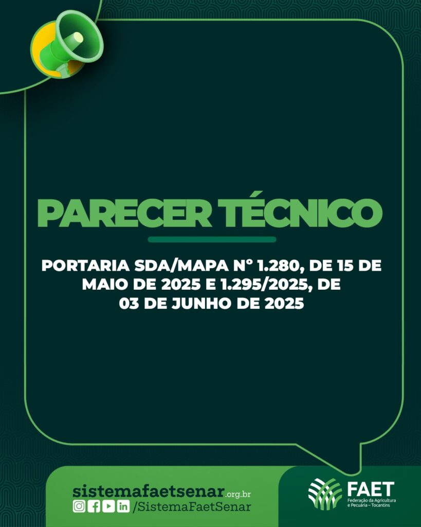 O Parecer Técnico foi elaborado com o objetivo de apresentar as Portarias, com ênfase nas principais cadeias produtivas do Tocantins. Além disso, aborda itens que precisam ser discutidos e alterados, bem como evidencia os entraves que os produtores rurais tocantinenses poderão enfrentar caso as Portarias sejam implantadas