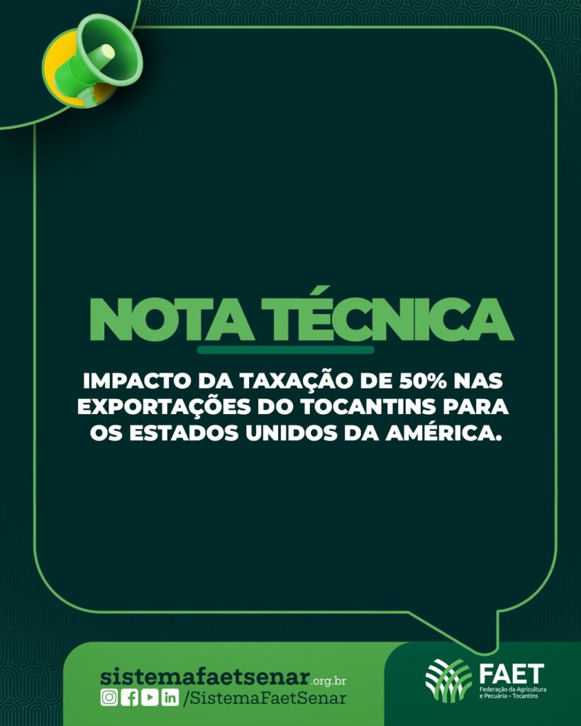 | Assunto | Impacto da taxação de 50% nas exportações do Tocantins para os Estados Unidos da América. |
